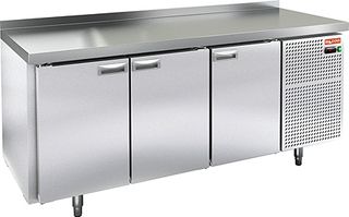 Основные характеристики: Температурный режим от -2 до 10 °С Объем 505 л Рабочая поверхность нерж. сталь Расположение агрегата сбоку Гастронормированный Количество дверей 3 Столешница с бортом Напряжение 220 В Мощность 0.41 кВт Ширина 1835 мм Глубина 700 мм Высота 900 мм Вес (без упаковки) 115 кг Страна-производитель Россия Описание: Охлаждаемый стол HICOLD GN 111/TN-W выполнен из оцинкованной стали с полимерным покрытием (RAL 9006). Верх стола накрыт столешницей из нержавеющей стали марки AISI-304. Пространство между внутренней и наружной стенкой заполнено пеной-теплоизолятором. Охлаждаемый стол HICOLD GN 111/TN-W имеет три распашные дверки для доступа в пространство полезного объема. Внутри стола расположен воздухоохладитель с вентиляторами, которые обеспечивают равномерное и быстрое распределение холодного воздуха внутри полезного объема стола. В полезном объеме предусмотрены полки-решетки для укладки продуктов в герметичной упаковке. Полки, направляющие полок и стойки выполнены по стандарту GN – полная совместимость с комплексом профессионального кухонного оборудования. Нагрузка до 50 кг на каждую полку. Особенности: Холодильный агрегат находится в отдельном отсеке. Отсек холодильного агрегата закрыт съемной панелью, что облегчает доступ к агрегату при сервисном обслуживании. Для обеспечения плотности прилегания дверей стола к корпусу используется уплотнитель с магнитной вставкой. Стол HICOLD GN 111/TN-W изготовлен в климатическом исполнении, которое гарантирует возможность эксплуатации при температуре окружающей среды до +40 °С. Цельнозаливной корпус стола обеспечивает высокую герметичность и жесткость конструкции. В столе используются компрессоры ведущих мировых производителей (L`UNITE HERMETIQUE). Электронный блок управления обладает повышенной надежностью и несколькими режимами оттаивания. Режим разморозки (оттайки) испарителя включается автоматически. Талая вода из воздухоохладителя отводится в ванночку, расположенную в агрегатном отсеке. На столе HICOLD GN 111/TN-W устанавливается петля-доводчик двери, что позволяет при открытии двери на 180° по отношению к столу беспрепятственно вести загрузку стола продуктом, и при обычном открытии двери доводчик сам закрывает дверь и плотно прижимает ее к корпусу стола. При этом увеличивается надежность морозильного стола.