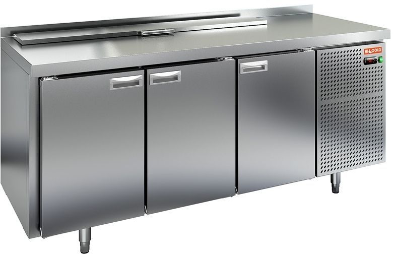 для САЛАТОВ из нержавеющей стали марки AISI 304 3 распашные двери Внутренний объем 505 л Габаритные размеры 1835х700х850 Напряжение, питание 220 В, 50 Гц Температурный режим +2…+10 град. С Мощность 710 Вт Размер отверстия в столешнице для гастроемкостей 1384х300 Вес 120 кг, (с крышкой, без гастроемкостей)