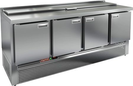 для САЛАТОВ из нержавеющей стали марки AISI 304 4 распашные двери Внутренний объем 460 л Габаритные размеры 1970х700х850 Напряжение, питание 220 В, 50 Гц Температурный режим +2…+10 град. С Мощность 730 Вт Размер отверстия в столешнице для гастроемкостей 1769х156 Вес 135 кг, нижнее расположение агрегата