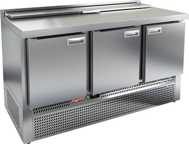 для САЛАТОВ из нержавеющей стали марки AISI 304 3 распашные двери Внутренний объем 340 л Габаритные размеры 1485х700х850 Напряжение, питание 220 В, 50 Гц Температурный режим +2…+10 градусов С Мощность 710 Вт Размер отверстия в столешнице для гастроемкостей 1384х303 Вес 115 кг, нижнее расположение агрегата