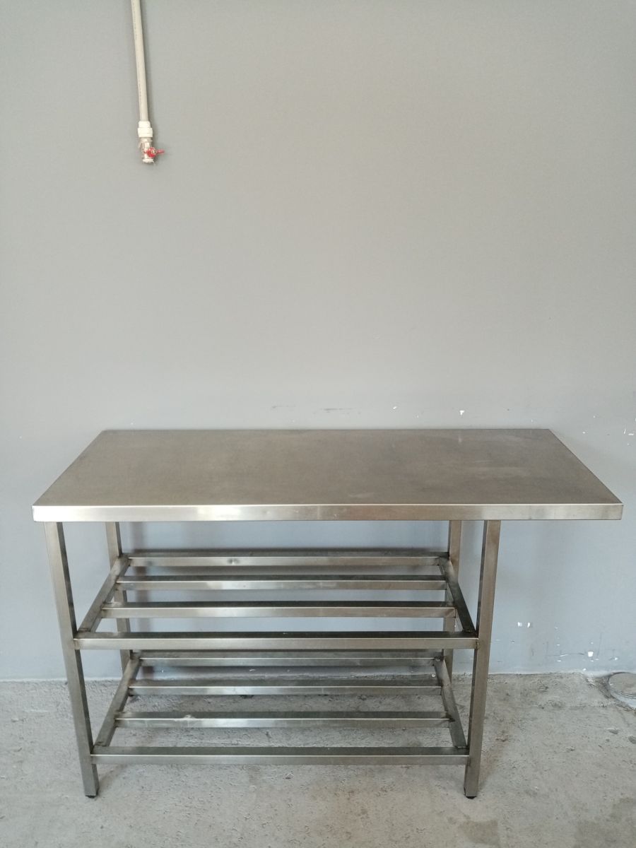 Состояние товара : хорошее; Причина уценки : б/у; Тип : открытый, рабочий ; Оснащение : решетка ; Материал каркаса : нерж.. сталь ; Материал столешницы : нерж. сталь ; Габаритные размеры : 1280х500х850 мм; Вес (без упаковки) : 19.6 кг ; Страна производства : Россия;