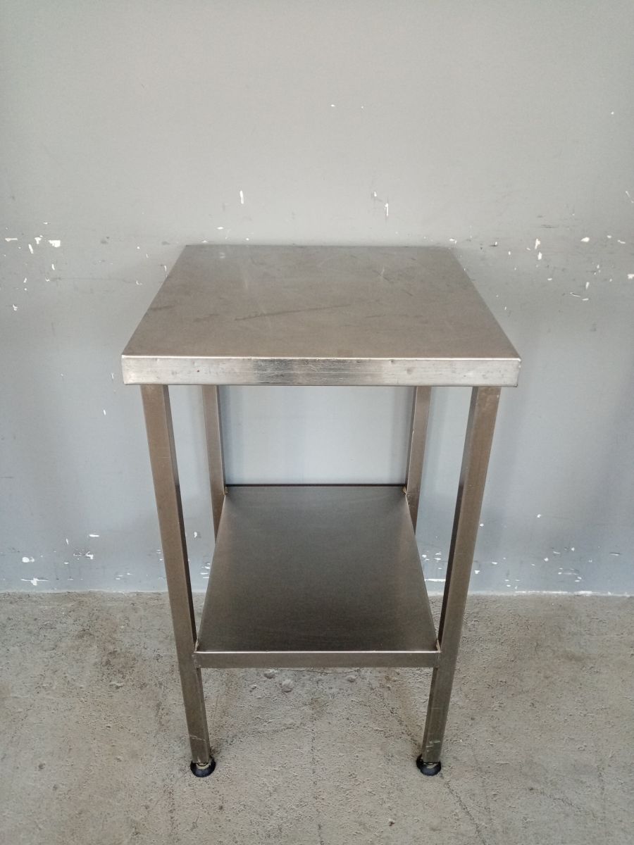 Состояние товара : хорошее; Причина уценки : б/у; Тип : открытый, рабочий ; Оснащение : полка ; Материал каркаса : нерж. сталь ; Материал столешницы : нерж.сталь ; Профиль ножек : квадратная труба ; Габаритные размеры : 500х500х870 мм; Вес : 16кг ; Страна производства : Россия;