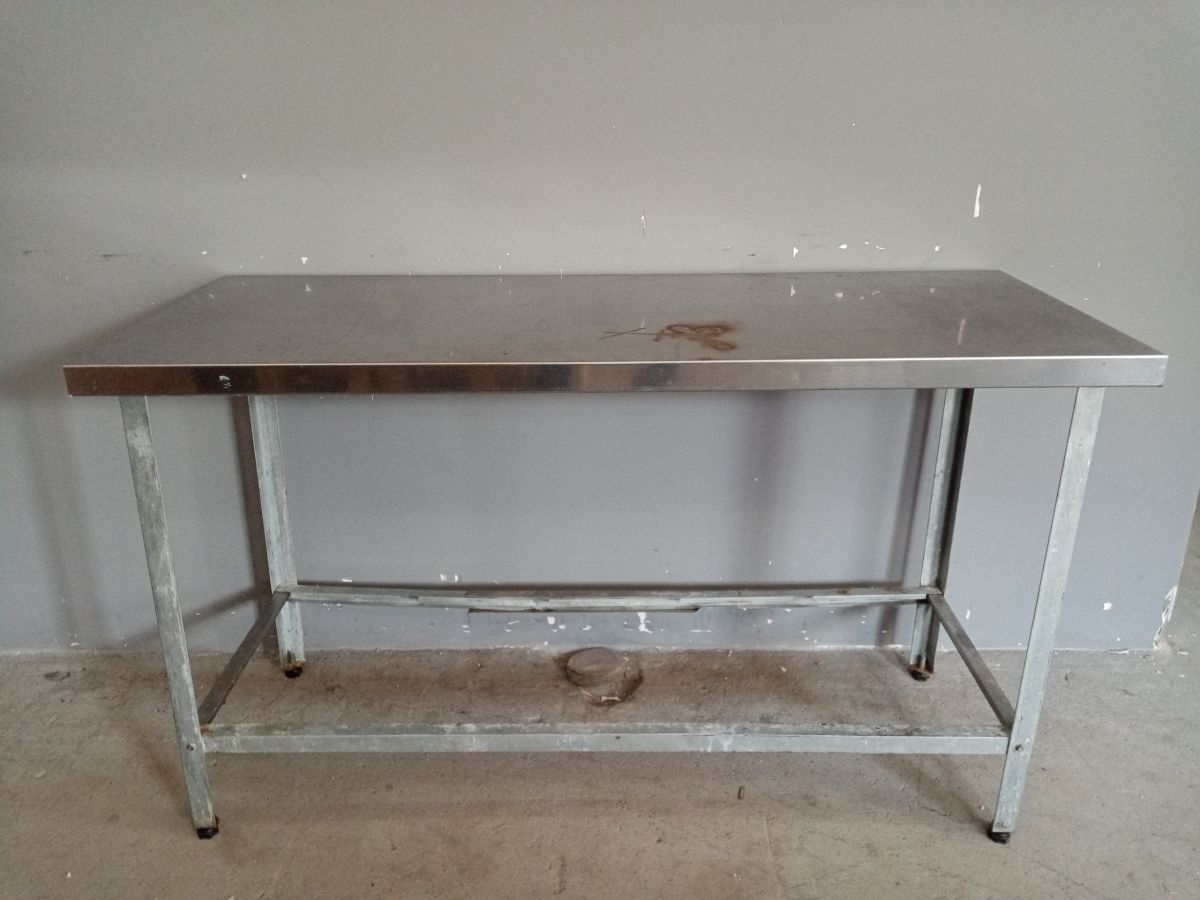 Состояние товара : отличное; Причина уценки : б/у; Тип : открытый, рабочий ; Оснащение : решетка ; Материал каркаса : оцинк./окраш. сталь ; Материал столешницы : нерж. сталь ; Габаритные размеры : 1500х600х850 мм; Вес : 24 кг ; Страна производства : Россия;