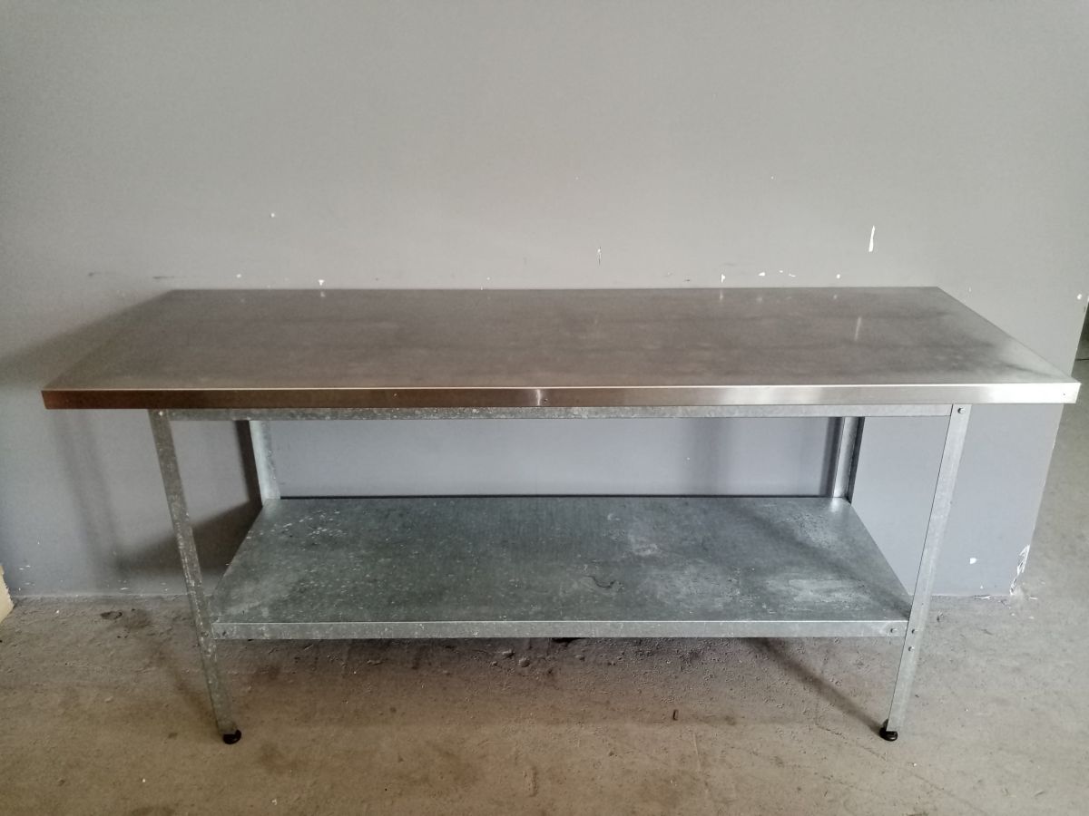 Состояние товара : отличное; Причина уценки : б/у; Тип : открытый, рабочий; Оснащение : полка ; Материал каркаса : оцинк. сталь ; Материал столешницы : нерж. сталь ; Габаритные размеры : 1800х600х850 мм; Вес : 26 кг ; Страна производства : Россия;