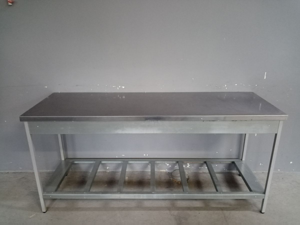 Состояние товара : отличное; Причина уценки : б/у; Тип : открытый, рабочий ; Установка : пристенный ; Оснащение : полка решетка ; Материал каркаса : краш. цинк. сталь ; Материал столешницы : нерж.сталь ; Габаритные размеры : 2000х600х850 мм; Вес : 38 кг ; Страна производства : Россия;