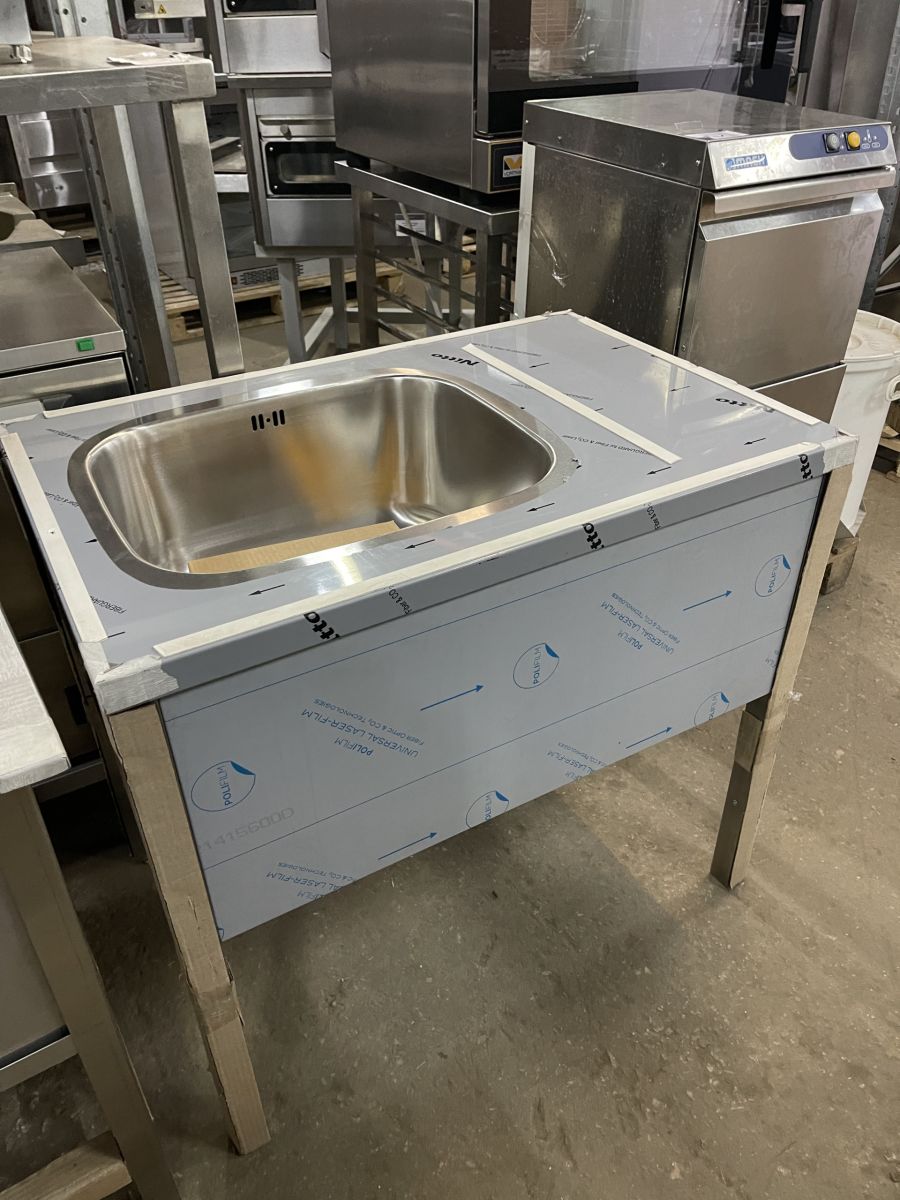 Состояние товара : новый; Причина уценки : без упаковки; Габаритные размеры : 1000х600х850 мм; Каркас : сварной из н/с 304; ; Фартук : с 3-х ст.; Размер мойки : 400х400х250 мм; Столешница : н/с 304;