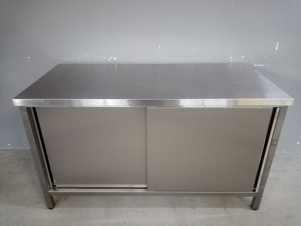 Состояние товара : новый; Причина уценки : уценка, без упаковки; Тип : закрытый, рабочий ; Установка : пристенный ; Борт : да; Оснащение : полка ; Материал каркаса : нерж. сталь ; Материал столешницы : сталь ; Тип дверей : двери-купе ; Габаритные размеры : 1500х700х850 мм; Вес : 60 кг ; Страна производства : Россия;