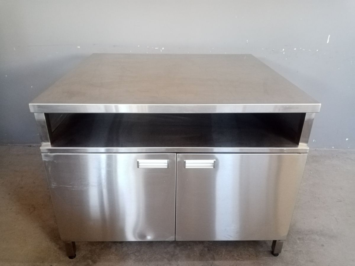 Состояние товара : хорошее; Причина уценки : б/у; Тип : открытый, рабочий; Материал каркаса : нерж. сталь ; Материал столешницы : неж. сталь ; Тип дверей : распашные ; Габаритные размеры : 1150х1050х900 мм; Вес : 58 кг; Страна производства : Россия;
