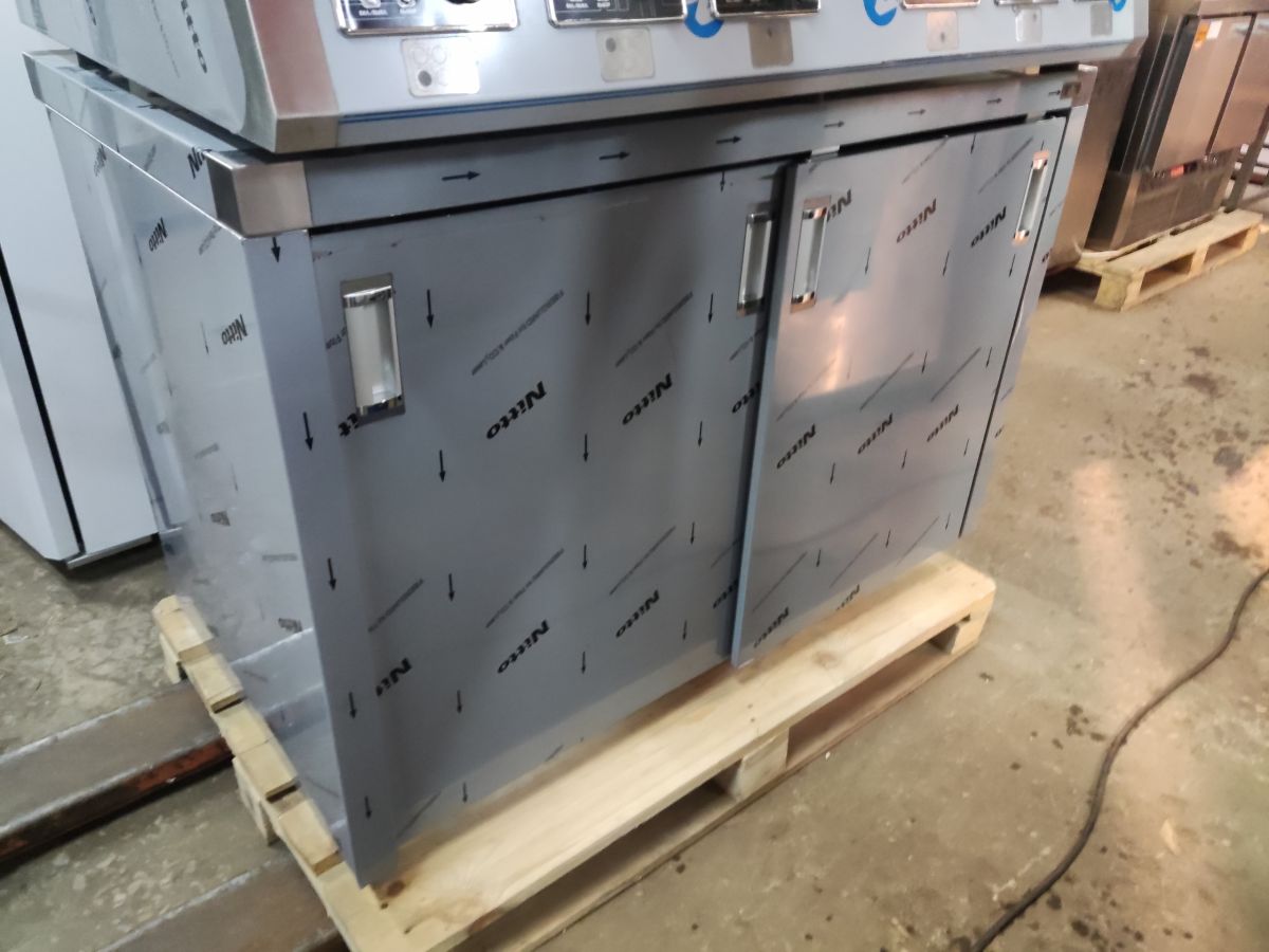 Состояние товара : новый; Причина уценки : без упаковки; Габариты (д/ш/в) : 1200х700х850 мм; Сталь : AISI 430; Фанера : h15; Сталь : AISI 430; Двери : 2 двери-купе; Полка : да; Борт : да; Задняя стенка : сталь AISI 430;