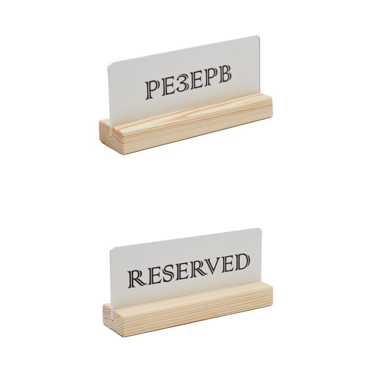 Табличка Резерв/Reserved на деревянном основании размером 150х70х40 мм. Устойчивое основание из натурального бессучкового дерева. Табличка незаменима в заведениях общепита, кафе и ресторанах.
