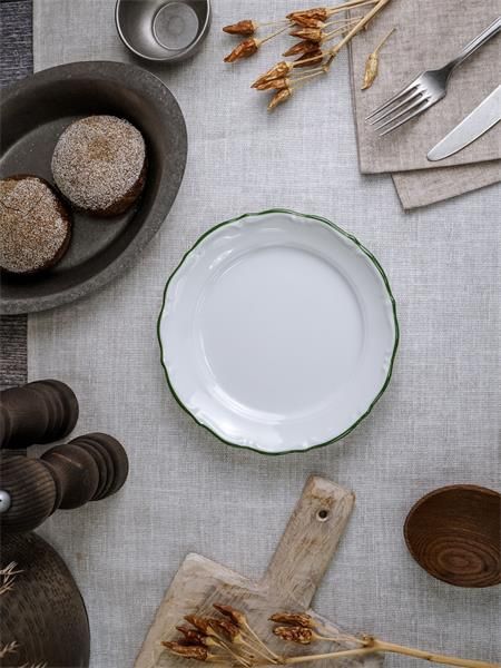 Тарелка мелкая 18 см, кант зелёный