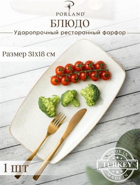 Тарелка прямоугольная 31*18 см фарфор цвет бежевый Seasons