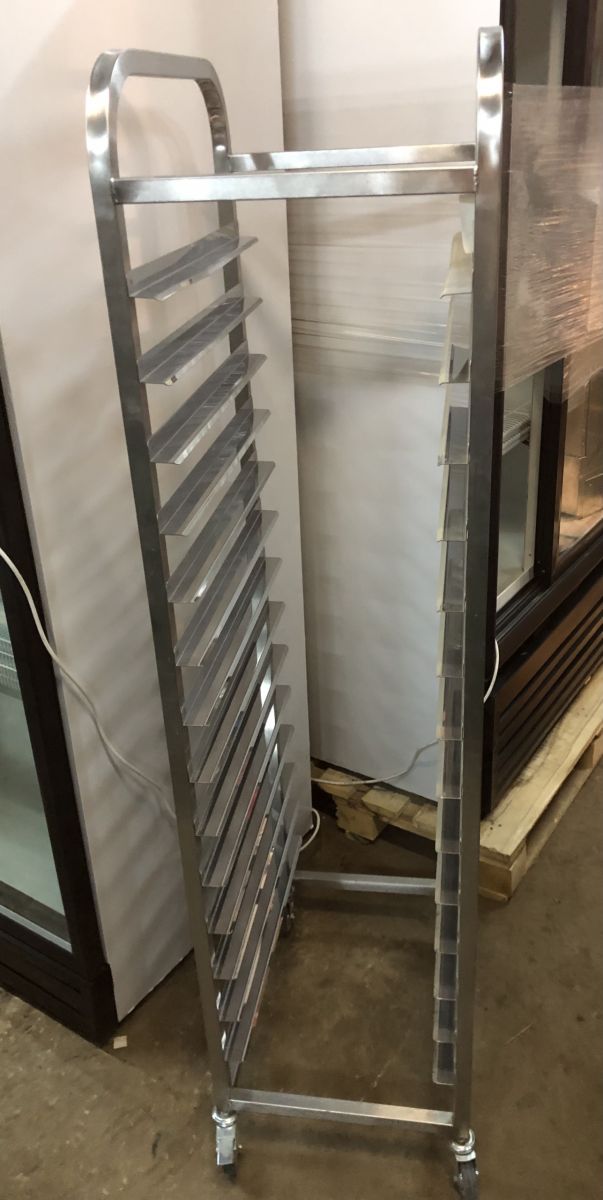 Состояние товара : 1 неделя эксплуатации; Количество уровней : 14 ; Расстояние между уровнями, мм : 90 ; Размер противней/подносов : GN1/1 ; Материал : Нерж. сталь ; Каркас : Сварной ; Тормоза на колесах : Да ; Габаритные размеры : 415х560х1690 мм; Производство : Россия;