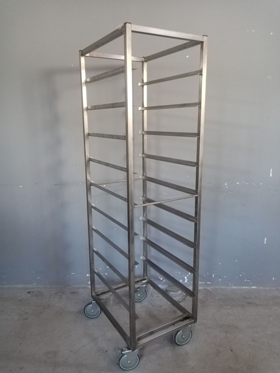 Состояние товара : хорошее; Причина уценки : б/у; Назначение : для подносов, для противней ; Количество уровней : 9 ; Расстояние между уровнями : 160 мм ; Размер противней / подносов : 600х400 мм ; Габаритные размеры : 465х610х1800 мм; Вес : 21 кг ; Страна производства : Россия;