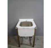 Состояние товара : отличное; Причина уценки : б/у; Установка : напольная ; Разновидность : открытая ; Материал каркаса : нерж. сталь ; Материал ванны : нерж. сталь ; Для мойки котлов : да; Количество раковин : 1 ; Рабочая поверхность : нет ; Борт : да; Размеры раковины (ДхШхВ) : 800х510 мм ; Глубина раковины : 380 мм ; Габаритные размеры : 1000х700х850 мм; Страна производства : Россия;