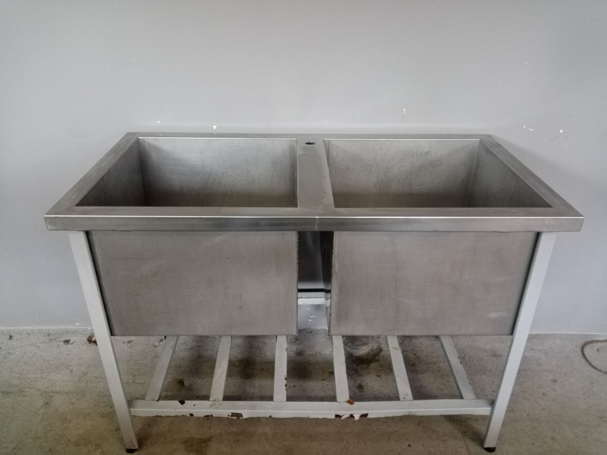 Состояние товара : хорошее; Причина уценки : б/у; Установка : напольная ; Разновидность : открытая ; Тип мойки : сварная ; Материал каркаса : краш. сталь ; Материал ванны : нерж. сталь ; Количество раковин : 2 ; Габаритные размеры : 1250х630х850 мм; Размер мойки : 530х530х400 мм ; Страна производства : Россия;