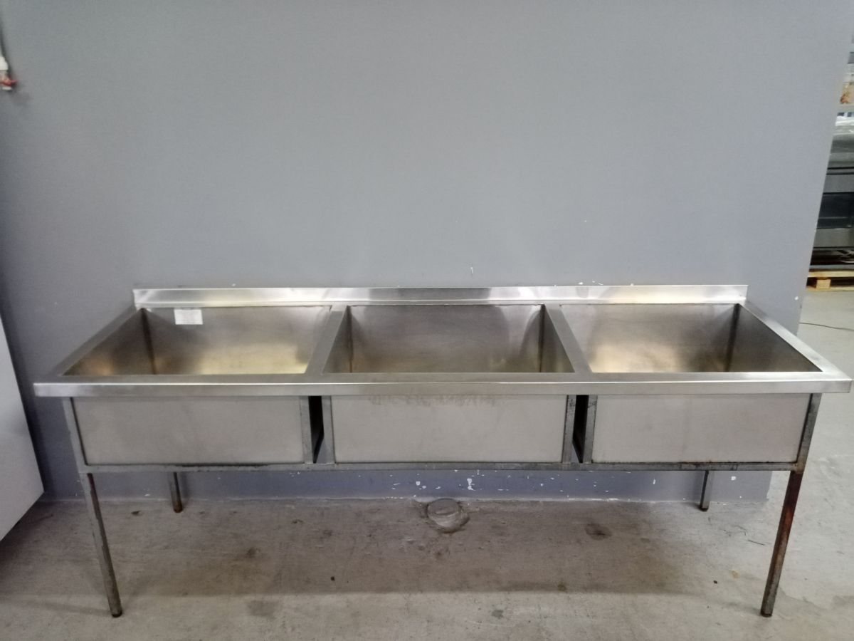 Состояние товара : хорошее; Причина уценки : б/у; Установка : напольная ; Разновидность : открытая ; Тип мойки : сварная ; Материал каркаса : краш. сталь ; Материал ванны : нерж. сталь ; Количество раковин : 3 ; Рабочая поверхность : нет ; Габаритные размеры : 1500х800х850 мм; Вес : 20 кг ; Страна производства : Россия;