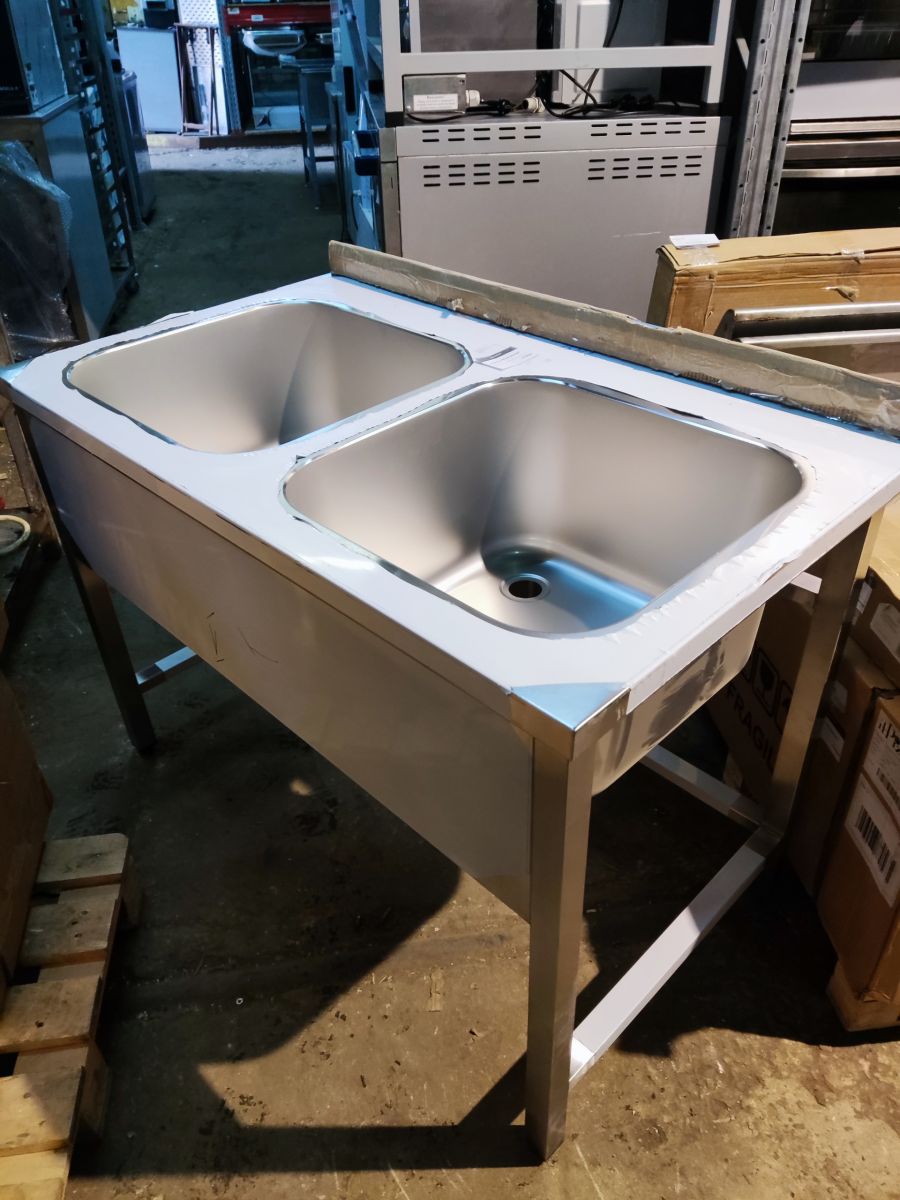 Состояние товара : новый; Причина уценки : без упаковки; Установка : напольная ; Разновидность : открытая ; Тип мойки : цельнотянутая ; Материал каркаса : нерж. сталь ; Материал ванны : нерж. сталь ; Количество раковин : 2 ; Рабочая поверхность : нет ; Борт : да; Обвязка : да; Размеры раковины (ДхШхВ) : 500x500 мм ; Глубина раковины : 300 мм ; Габаритные размеры : 1200х700х850 мм ; Страна производства : Россия;