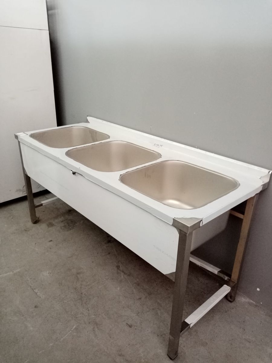 Состояние товара : новы; Габаритные размеры : 1800х700х850 мм; Глубина раковины : 300 мм ; Размеры раковины (ДхШхВ) : 500x500 мм ; Обвязка : да; Борт : да; Рабочая поверхность : нет ; Количество раковин : 3 ; Материал ванны : нерж. сталь ; Материал каркаса : нерж. сталь ; Тип мойки : цельнотянутая ; Разновидность : открытая ; Установка : напольная ; Причина уценки : замятие обвязки каркаса; Страна производства : Россия;