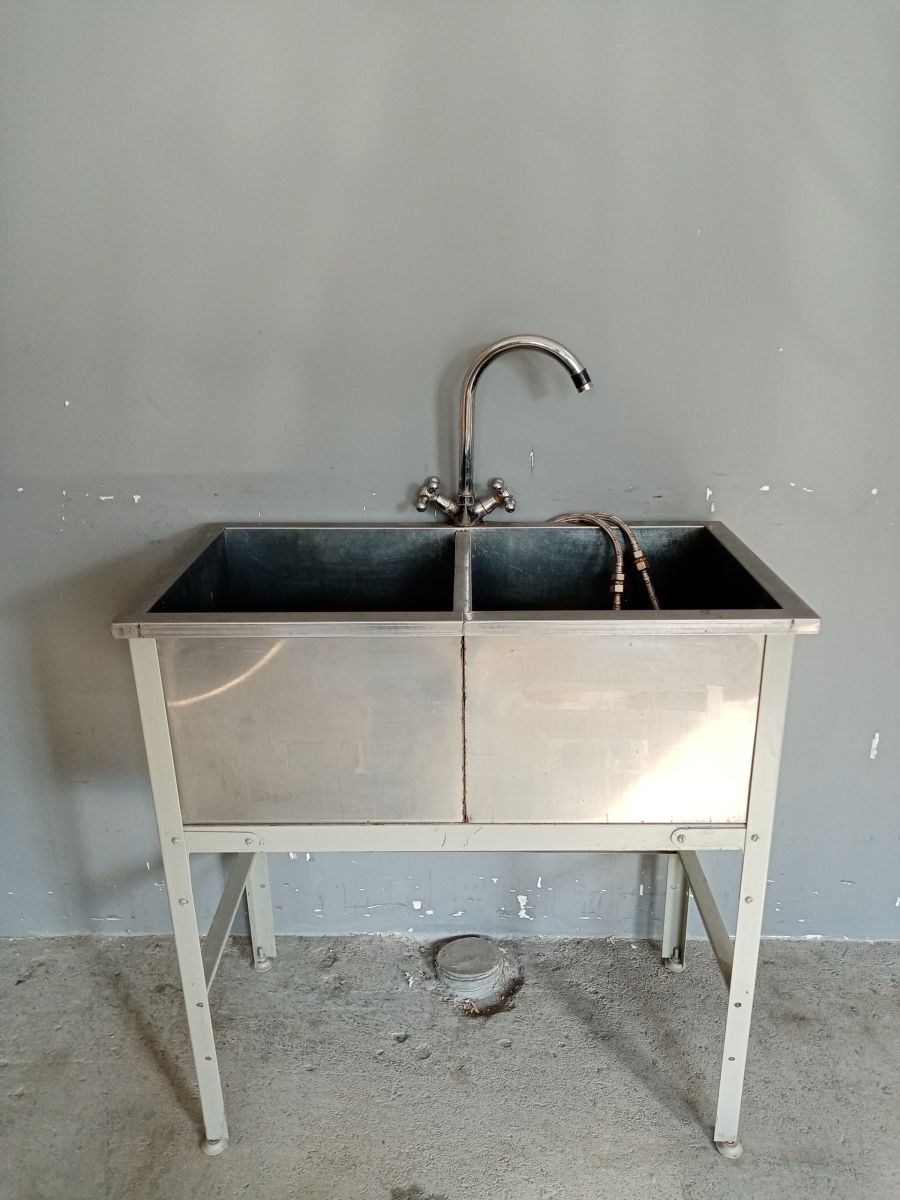 Состояние товара : хорошее; Причина уценки : б/у; Установка : напольная ; Разновидность : открытая ; Тип мойки : сварная ; Материал каркаса : оцинк. сталь ; Материал ванны : нерж. сталь ; Количество раковин : 2; Рабочая поверхность : нет ; Обвязка : да; Размеры раковины (ДхШхВ) : 400х380 мм ; Глубина раковины : 300 мм ; Габаритные размеры : 850х470х850 мм; Вес : 15 кг ; Страна производства : Россия;
