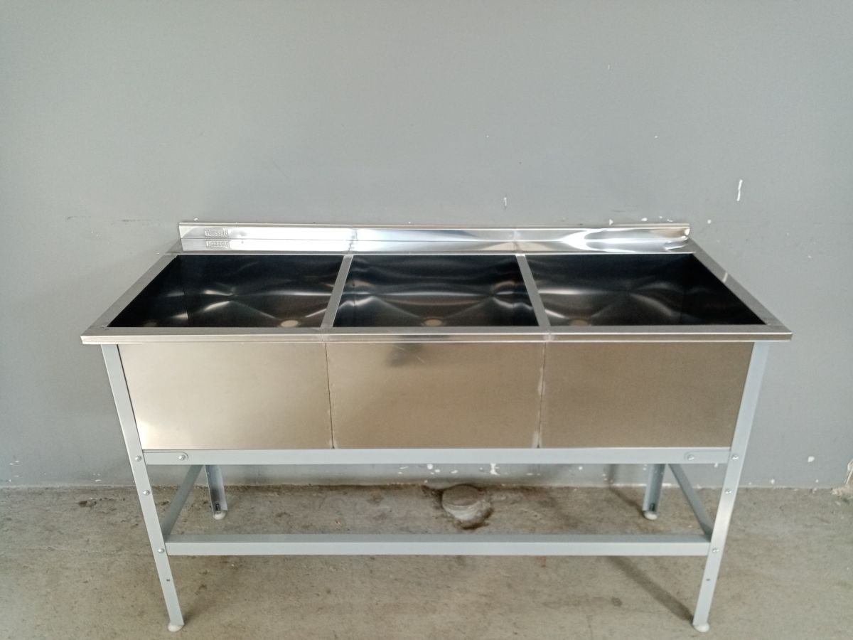 Состояние товара : новый; Причина уценки : незначительное замятие борта; Установка : напольная ; Разновидность : открытая ; Тип мойки : сварная ; Материал каркаса : окрашенная сталь ; Материал ванны : нерж. сталь ; Количество раковин : 3 ; Рабочая поверхность : нет ; Борт : да; Размеры раковины (ДхШхВ) : 430х430 мм ; Глубина раковины : 300 мм; Габаритные размеры : 1400х600х870 мм; Вес : 30.5 кг ; Страна производства : Россия;
